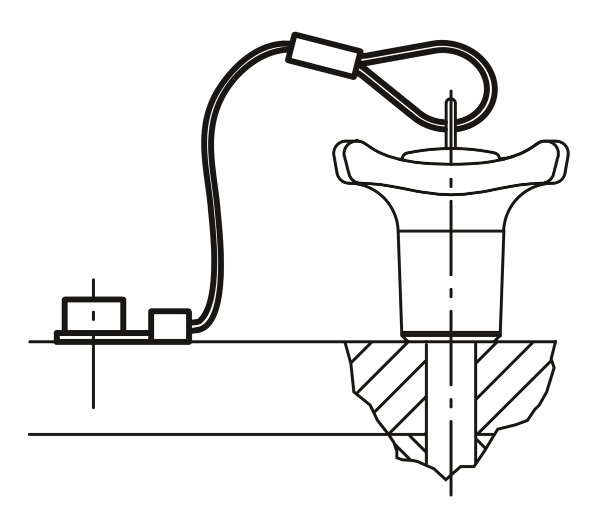 With the retaining cable and key ring (K0367) the ball lock pins (K0363, K0364, K0641, K0366, K0642, K0790, K0791) can be secured so that they cannot be lost. An M5 screw is used to secure the retaining cable.