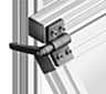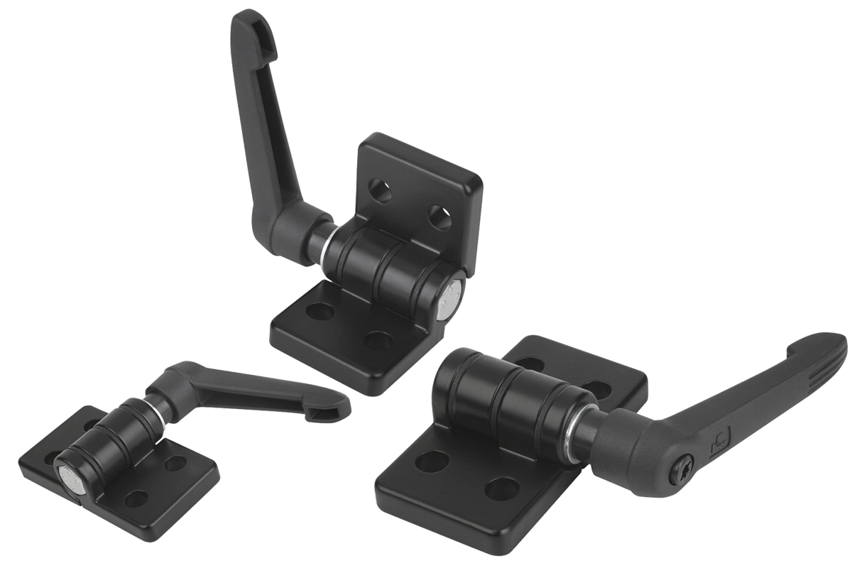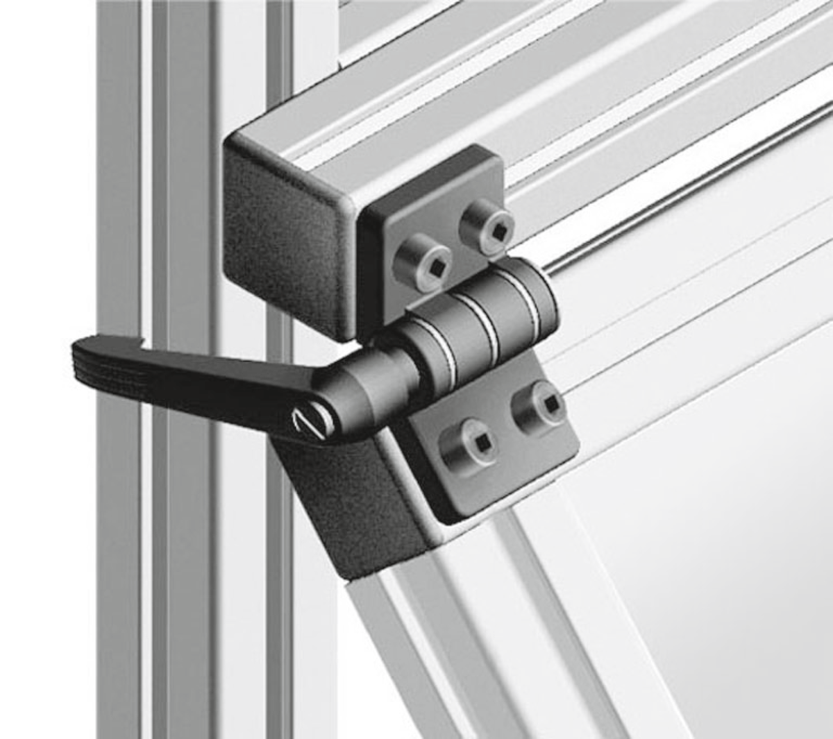The hinges are available with or without guide tabs for aluminum profile slots.