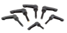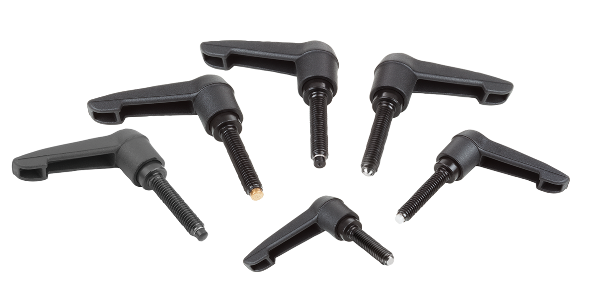 Adjustable handles, plastic with external thread and point, threaded insert black oxidized steel