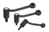 Press the handle down until the teeth are fully engaged. The object can now be clamped or released. Spring pressure pushes the handle up disengaging the teeth and thereby restoring the safety function (handle can be rotated without engaging).