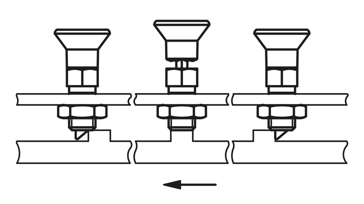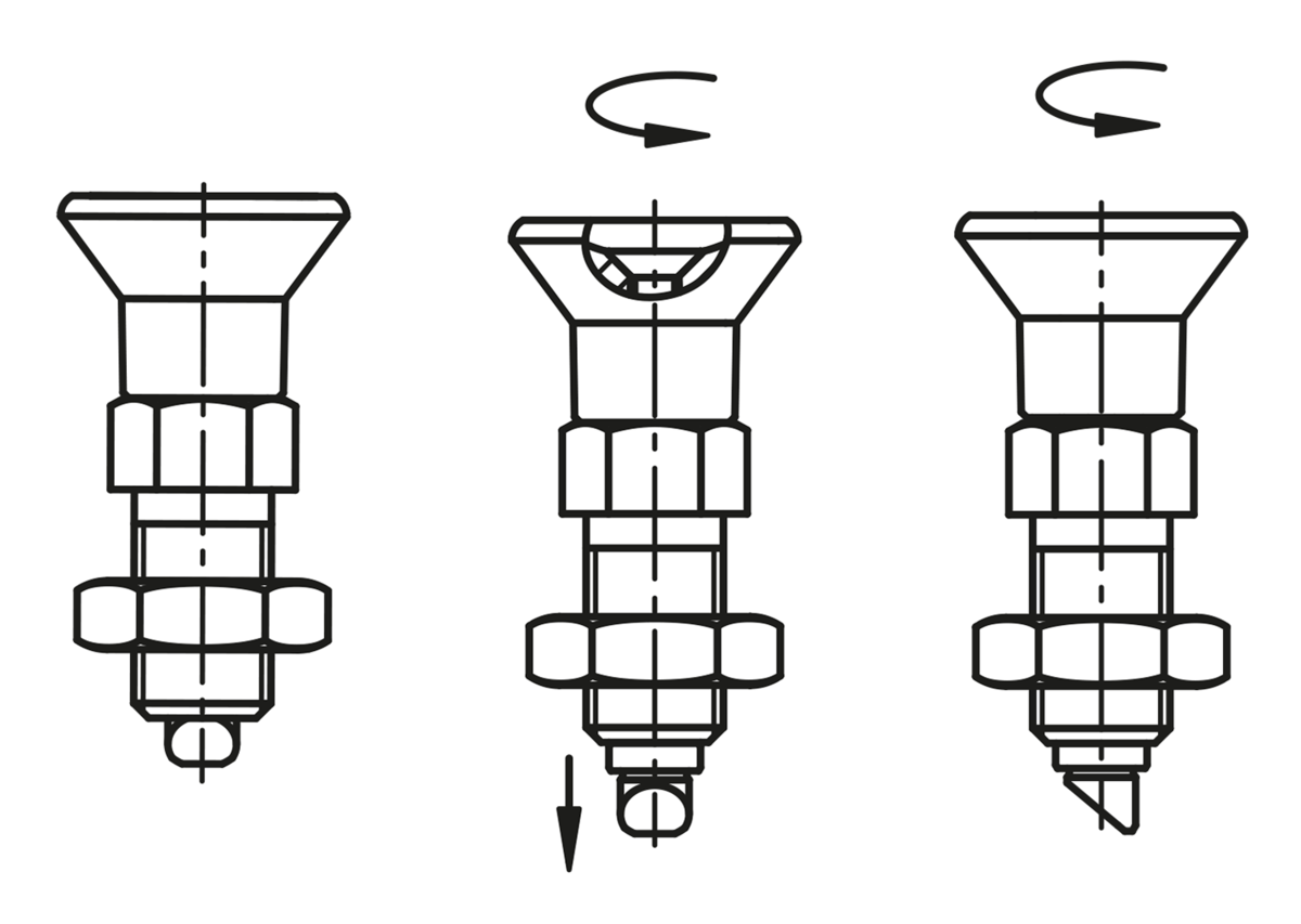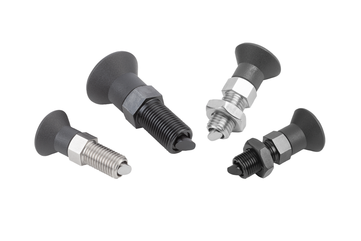 Indexing plungers are used where any change in locking position due to lateral forces should be prevented. A new indexed position can be only be moved to after the pin has been manually retracted.