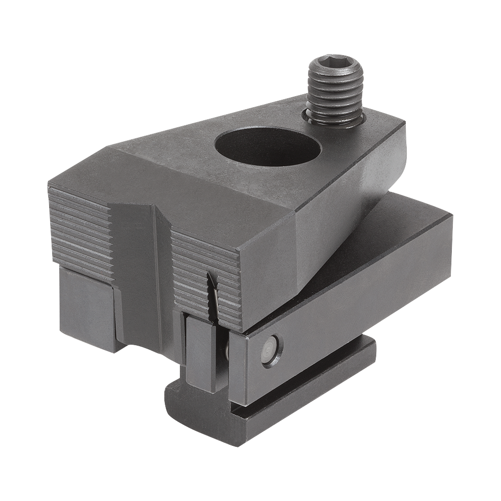 Tightening the ball-end thrust screw moves the jaw plates forwards. The workpiece is pushed against the fixed stop and simultaneously forced down onto the seating face. The seating face for the workpiece can be mounted directly on the machine table.