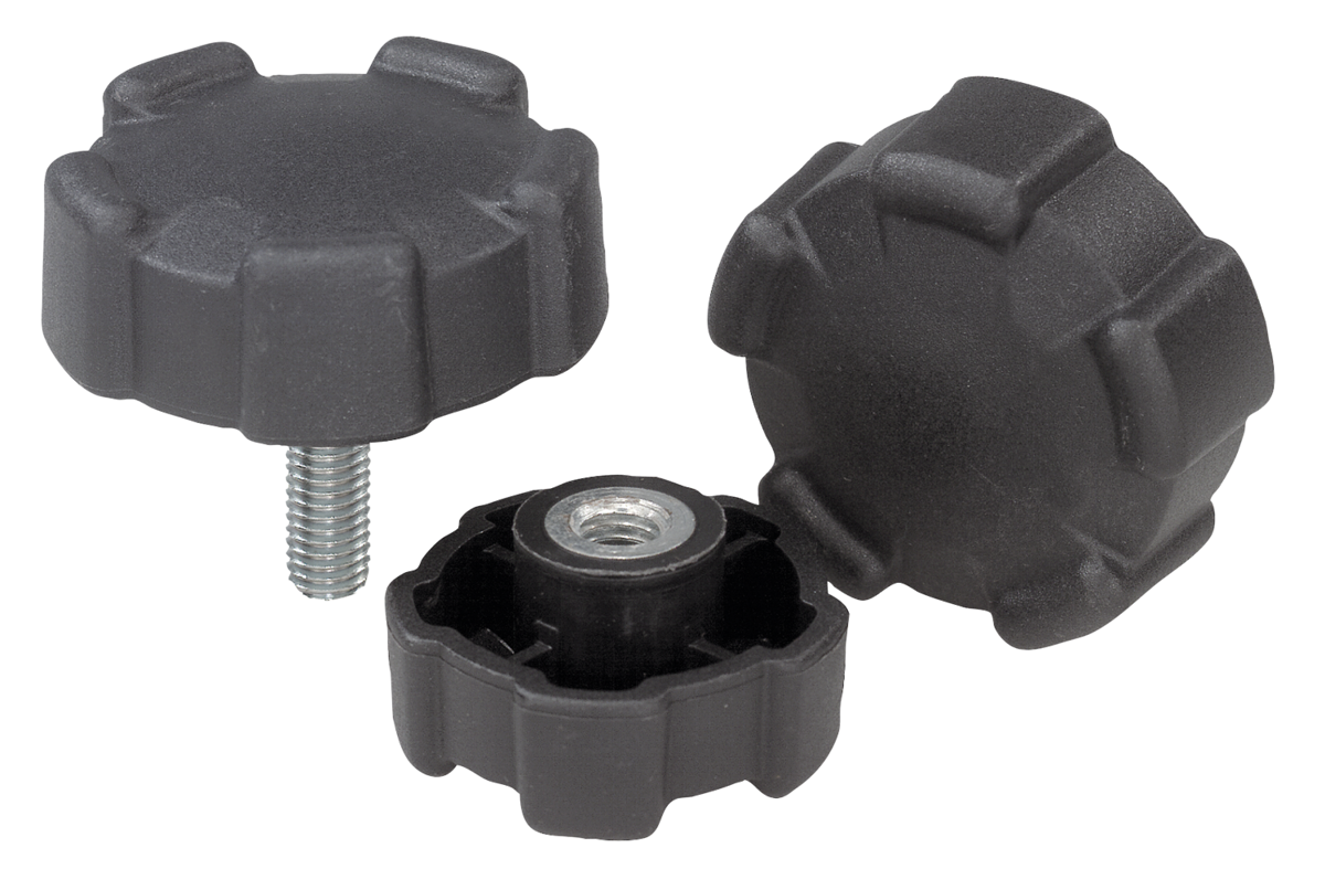 Five lobe grips, plastic, threaded insert brass or steel, with internal thread