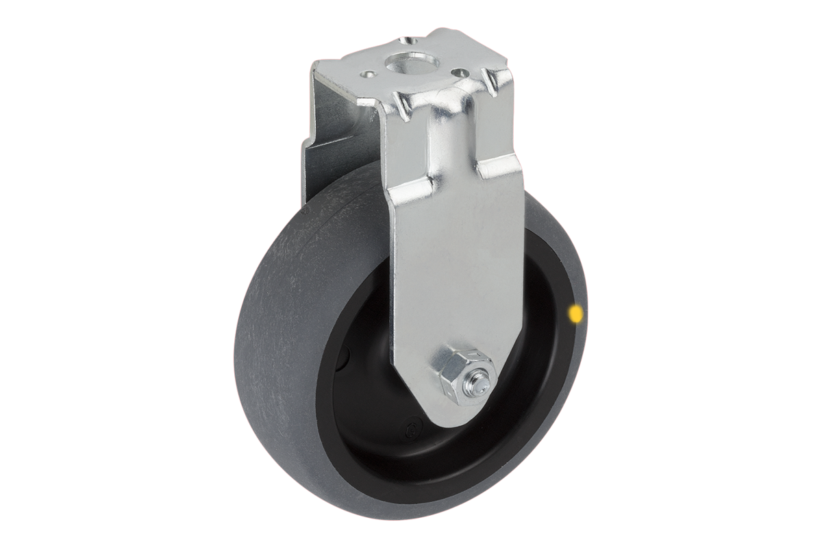 Wheel axle threaded. Fixed casters with bolt hole. Electrically conductive wheels, non-marking gray. The ohmic resistance of the wheel ≤ 10⁴Ω.