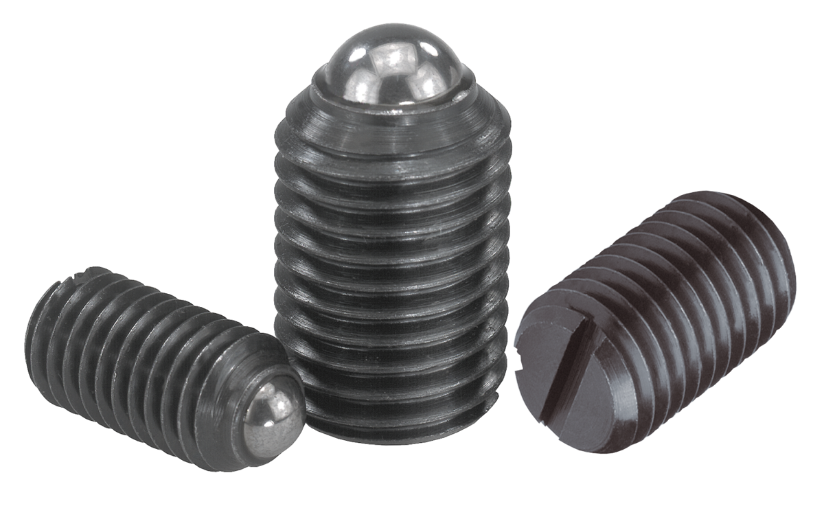 Spring plungers with slot and ball, steel, long version, standard spring force