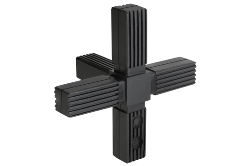 Système de connexion sans vis. Les connecteurs sont enfichés facilement dans le tube carré correspondant. Ils peuvent être démontés et réutilisés plusieurs fois.