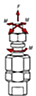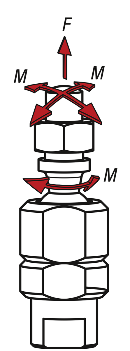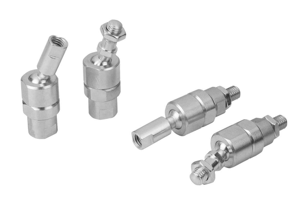 Embout axial à rotule adapté pour l'absorption des forces de traction. L'écrou de bridage permet d'influer sur la mobilité de la bille ou de la serrer complètement.