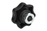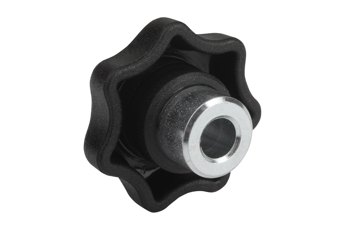 Les boutons étoile avec insert acier saillant se prêtent particulièrement aux goupillages transversaux, comme version à trou borgne lisse ou taraudée.