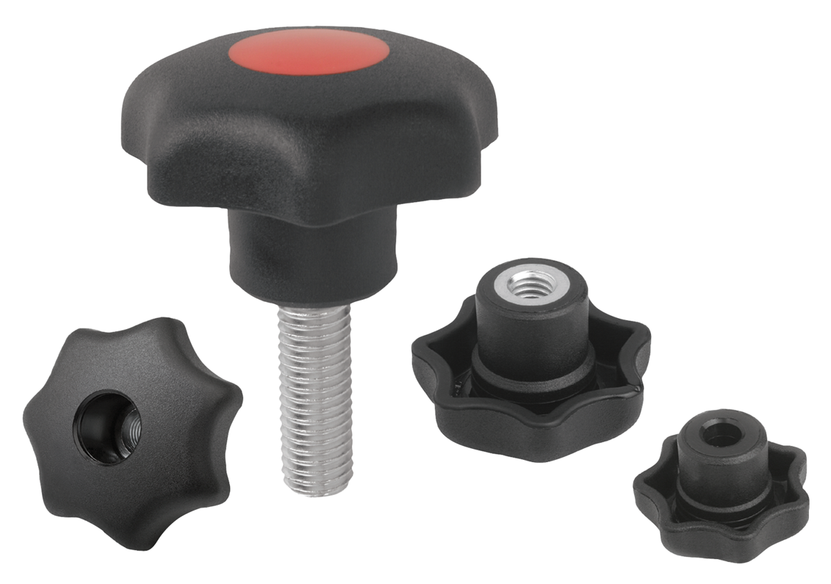 Bouton étoile similaire à DIN 6336, taraudage, avec pastille, forme K - inch