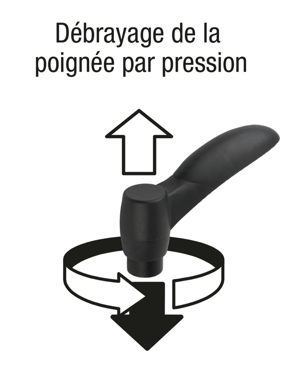 Poignée et insert en plastique renforcé.
