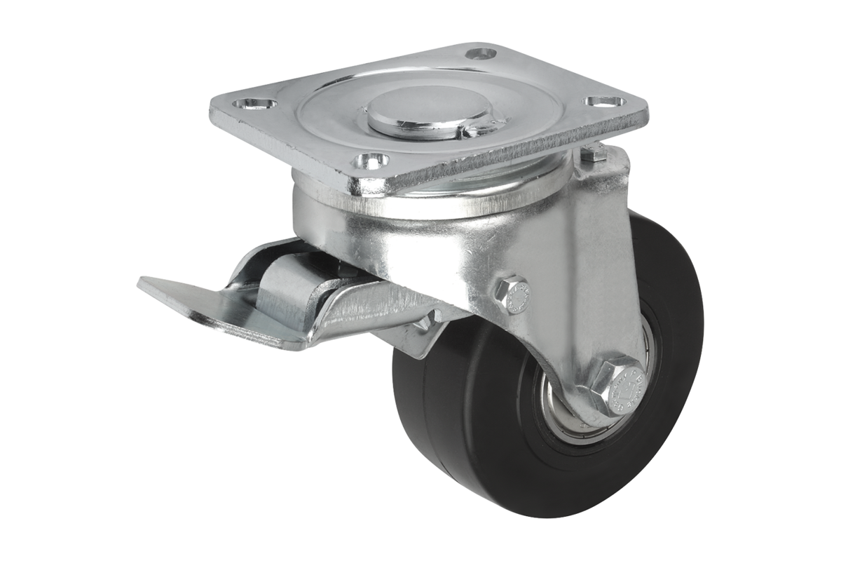 Corps : embouti. Chape, plaque de support et boulon central: renforcé. Roues équipées de paliers à billes de précision.