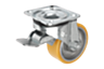 Roulettes pivotantes en tôle d’acier avec système stop-top, avec bande de roulement en Extrathane, modèle mi-lourd