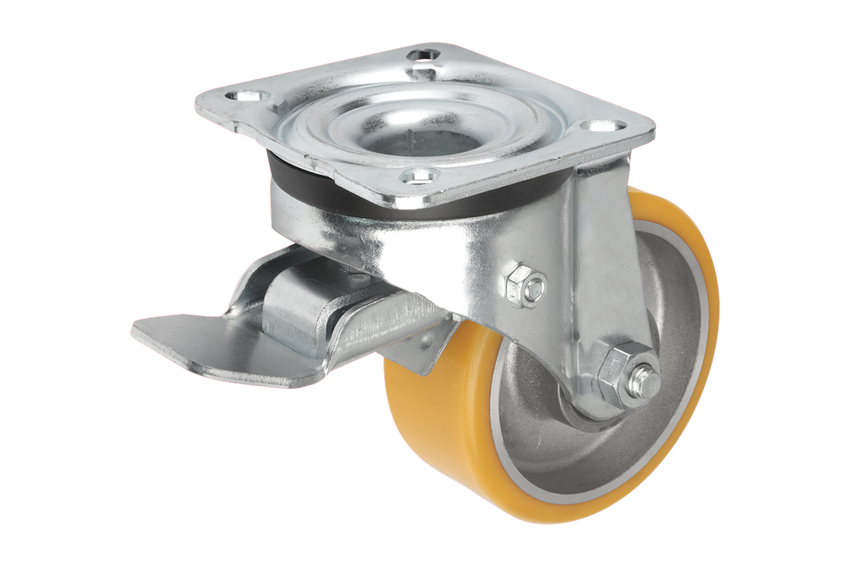 Roulettes pivotantes en tôle d’acier avec bande de roulement en Extrathane, modèle mi-lourd