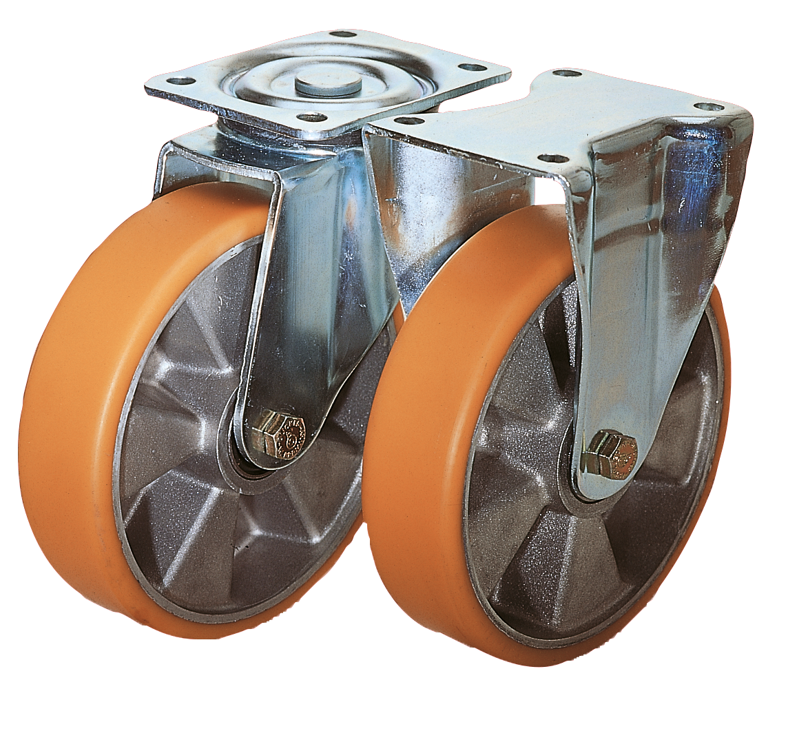 Roulettes fixes en tôle d’acier avec bande de roulement en Extrathane, modèle mi-lourd