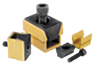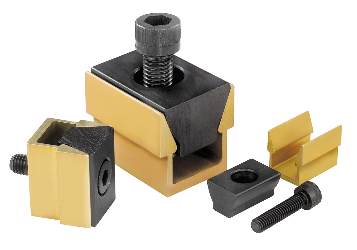 Le mors de serrage double permet de serrer simultanément deux pièces à usiner. Ce dispositif convient en particulier pour les pièces de forme cylindrique ou rectangulaire. Son faible encombrement permet de réaliser des serrages multiples peu encombrants.