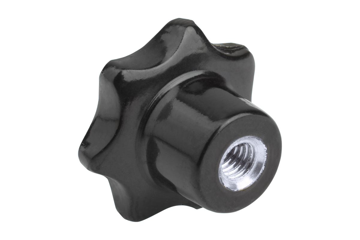Plastique thermodurcissable PF 31, noir.Insert acier zingué passivé bleu