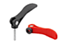 Cam levers, plastic with external thread, plastic thrust washer and steel or stainless steel stud