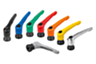Adjustable handles, zinc, with internal thread and clamping force intensifier, satin finish, threaded insert black oxidized steel