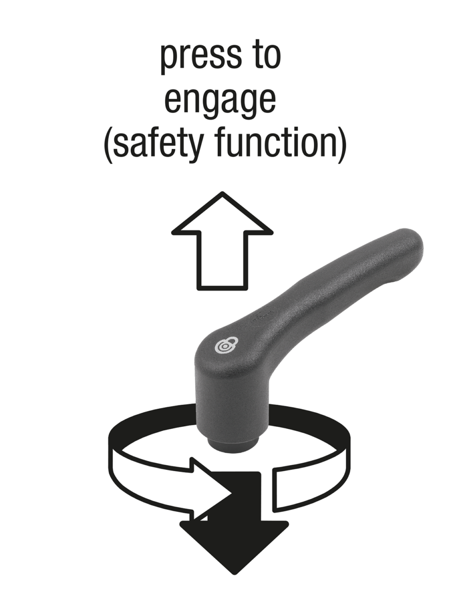 In the default position, the handle can be freely rotated and has no connection to the clamping point. The grip handle only engages when pushed down and the clamp can the loosened or tightened.