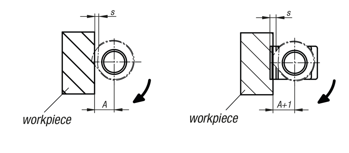 Dimension A refers to the distance from the workpiece to screw center (cam screw).