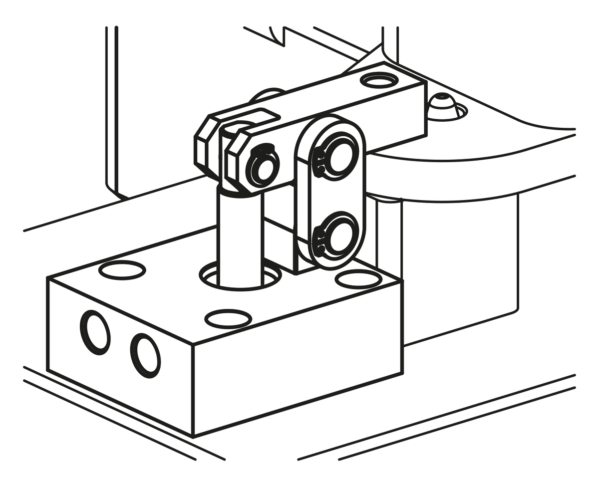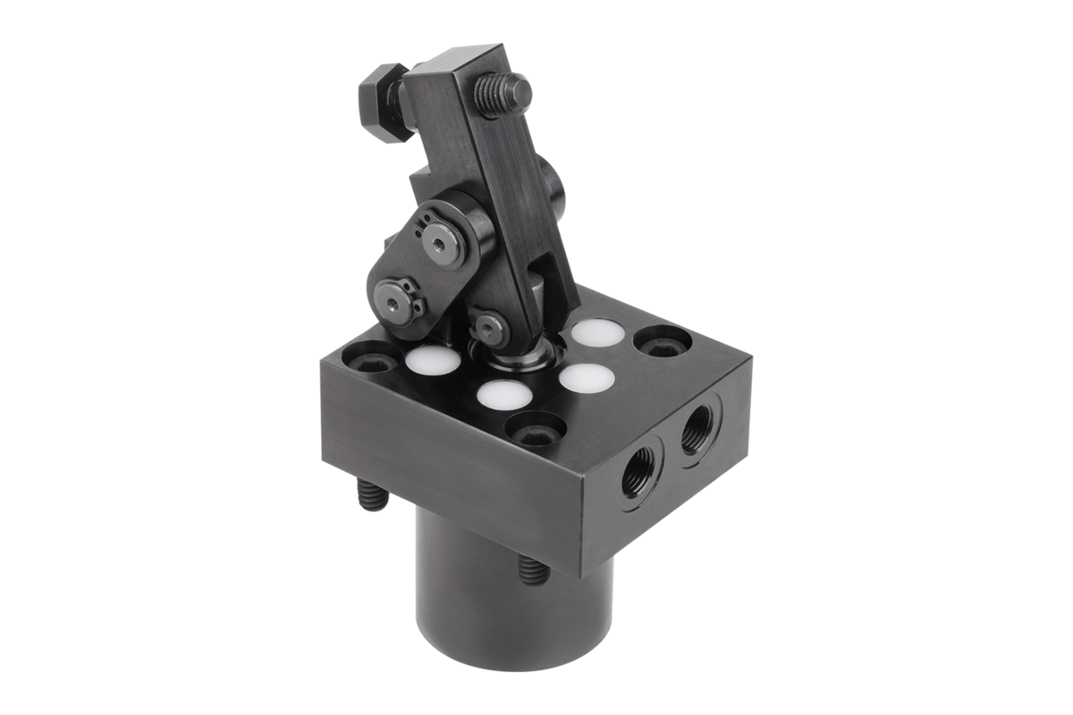 Link clamps are the optimal choice when, due to the clamping situation, the workpiece needs to be freely removed from above when unclamped. Due to the linear movement of the tension lever when opening or closing the link clamp, it is particularly suitable for clamping situations where a lateral movement of the clamping element is not possible, e.g. due to interfering contours. The force is transferred to the tensioning lever of the link clamp via the piston. The opening and closing times are clearly defined due to the link clamps double-acting mode of operation.