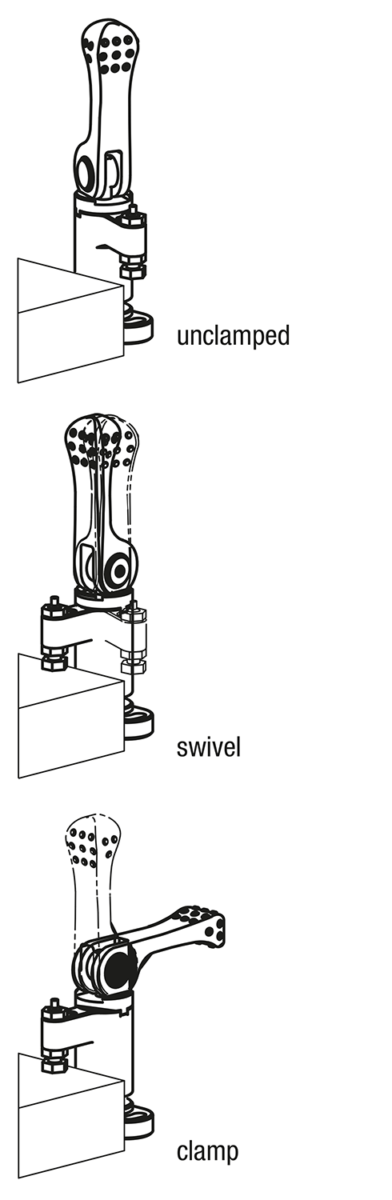 Swing clamps are used where the clamping points must be free when the workpiece is loaded or removed.