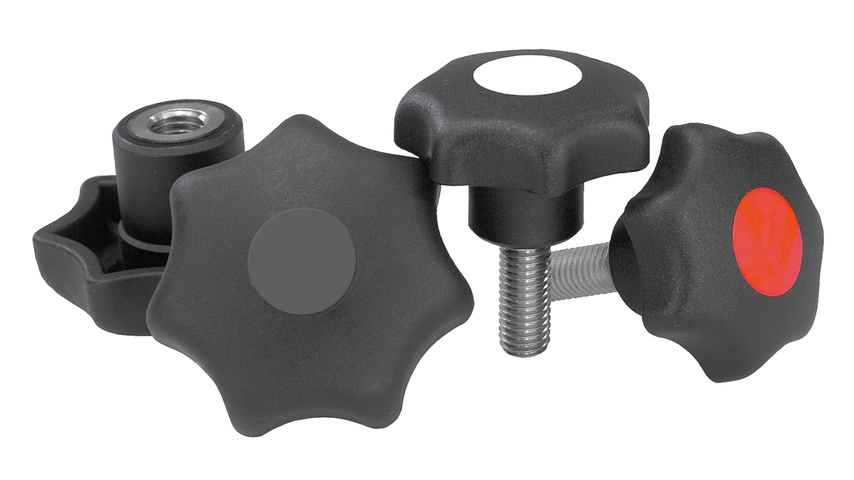 Star grips similar to DIN 6336, metal parts stainless steel, internal thread, with cap, style K