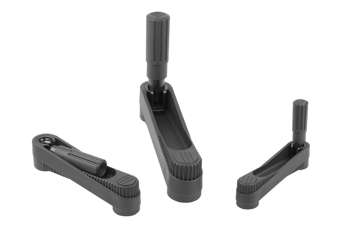 Crank handles with fold-down cylinder grip, with square socket