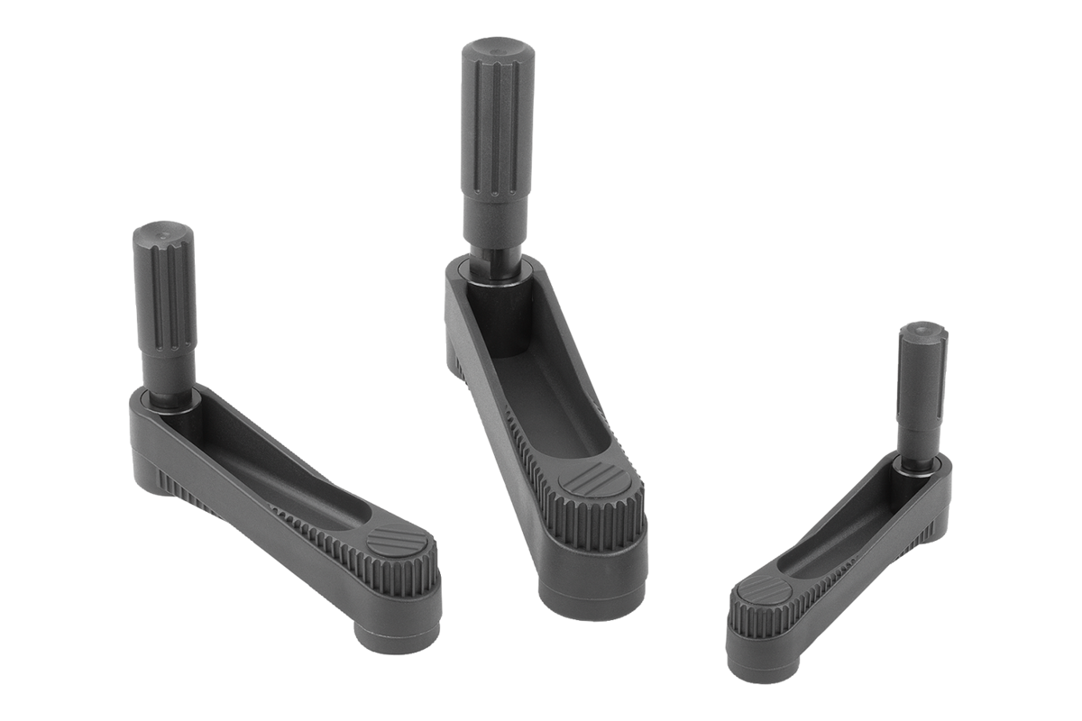 The crank handles can be secured to the shaft by cross-pinning or by parallel key together with a DIN 6912 cap screw and DIN 7349 washer.