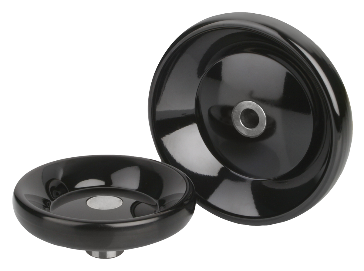 Disc handwheels without grip, steel bushing, style E, with reamed hole