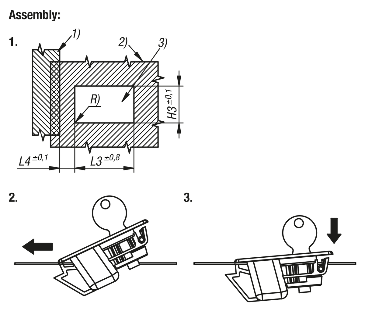 1. Produce a burr-free mounting cutout as shown in the drawing.