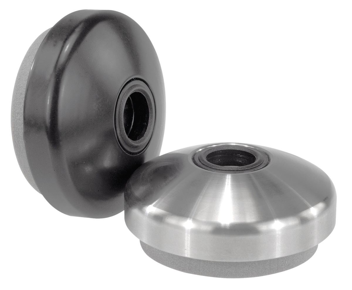 The load rating given in the table is a recommendation of the permanent static load up to which the absorption unit should be used. This static load corresponds to a surface pressure of 0.4 N/mm², at which the material achieves its optimum absorption properties. Here it is taken into account that under dynamic demands an additional load, up to 0.6 N/mm² may occur. The damper plate absorbs vibrations and prevents the swivel foot slipping.