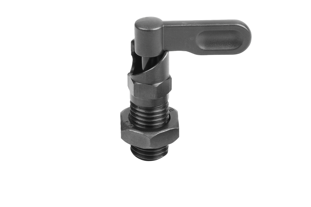 Cam-action indexing plungers are used when the indexing pin should not project all the time. Turning the handle through 180° retracts the pin.
