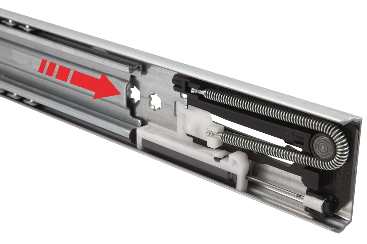 For telescopic slides with over-extension, the travel is greater than the overall length, which guarantees more comfort and accessibility. The slides have Soft-Control to dampen closing and close automatically. The dynamic load capacity of the telescopic slides indicates the maximum load rating of a vertically mounted slide pair when the entire extension length is used. The specified load-bearing capacities refer to the maximum value at 100,000 cycles.