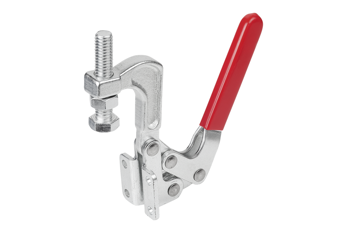 The pivot jaw toggle clamp is ideal for applications in which there is little mounting space at the sides. In this case the clamp plate is secured from below to the work surface.