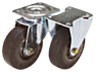 Steel plate swivel castors with steel wire reinforced elastic solid rubber tyres, heavy duty version