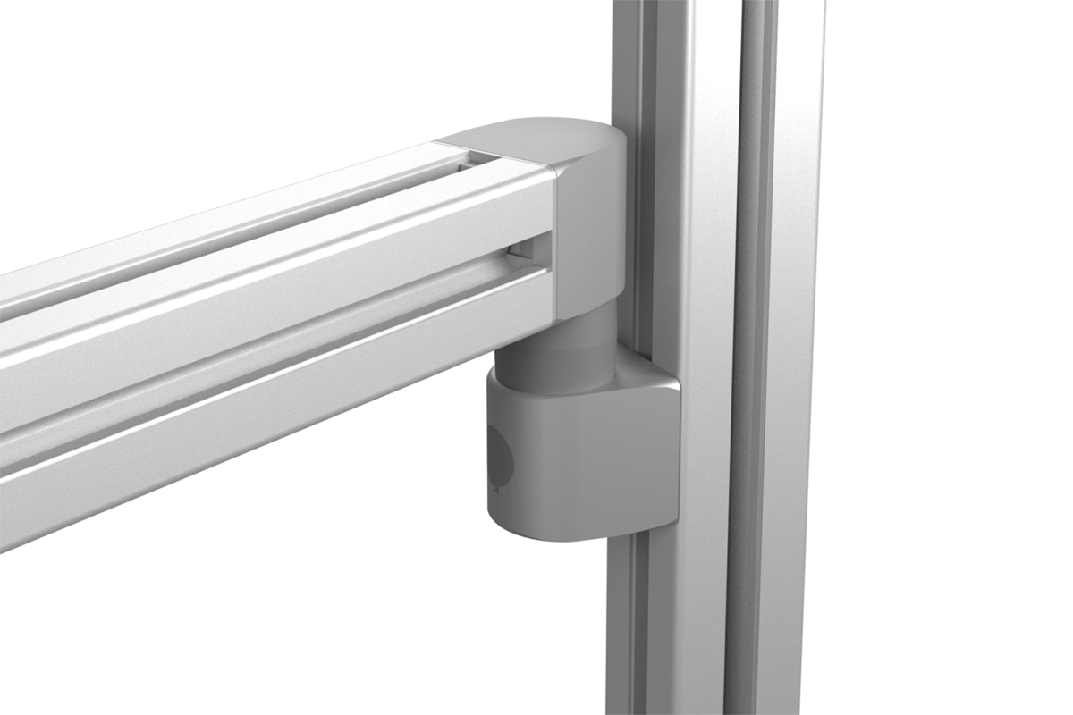 Friction joint for constructing individual swivel arms with the aid of aluminum profiles. These friction joints are characterized by a fixed friction torque that is available in 6 settings from 0.5 to 15 Nm. Rotates through 360°. Grid pitch 40 mm.