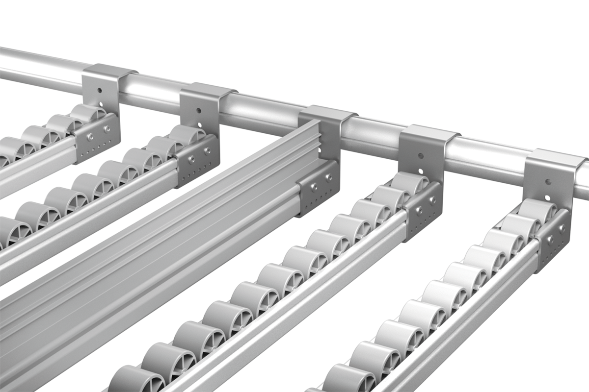 The guide rails hold the transport goods securely on the roller track. For installation, the guide rails are simply pushed into the suspension brackets or mounting brackets.