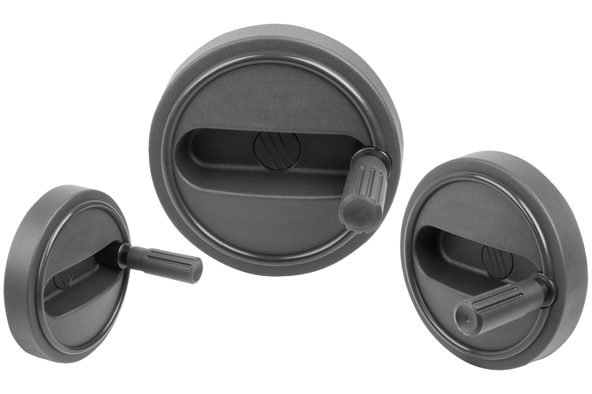 The handwheels can be secured to a shaft using a transverse pin or by parallel key connection together with a DIN 6912 cap screw and a DIN 7349 washer.