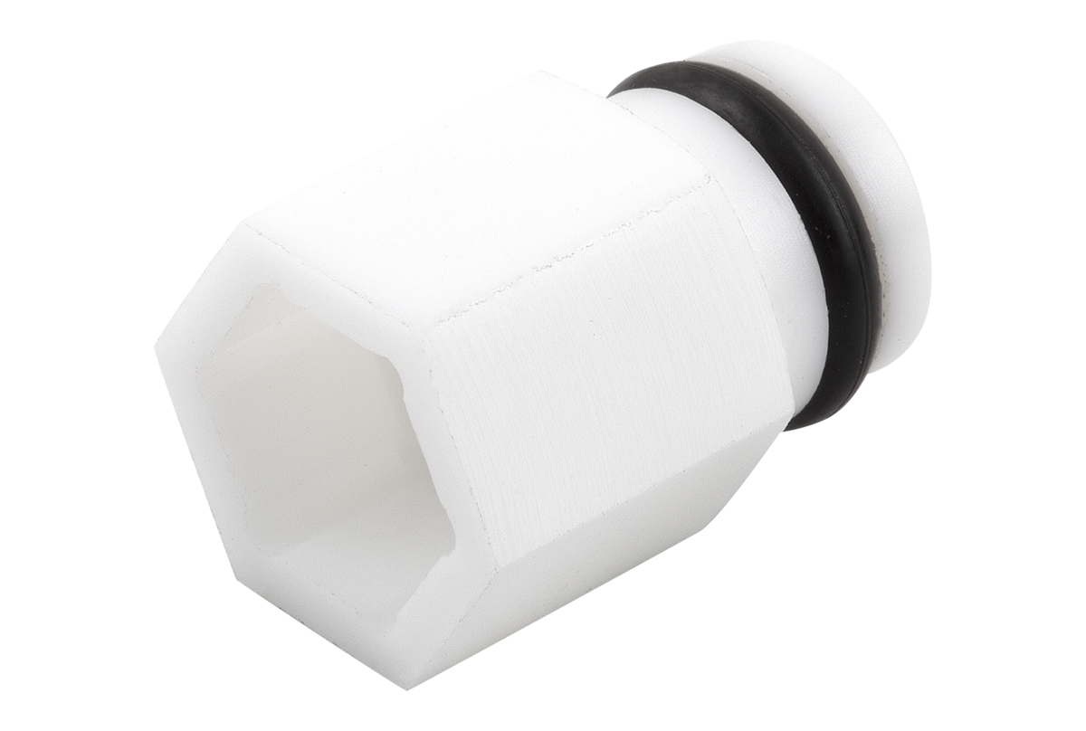 Socket with 1/2” drive, made by Hazet. Specially modified, for holding the plastic inserts. The plastic inserts are securely held by the inner style and length of the socket. Optimal drive torque is transmitted to the screw head. By careful use, metallic contact between the socket and the hex head is prevented. Contact corrosion is eliminated.