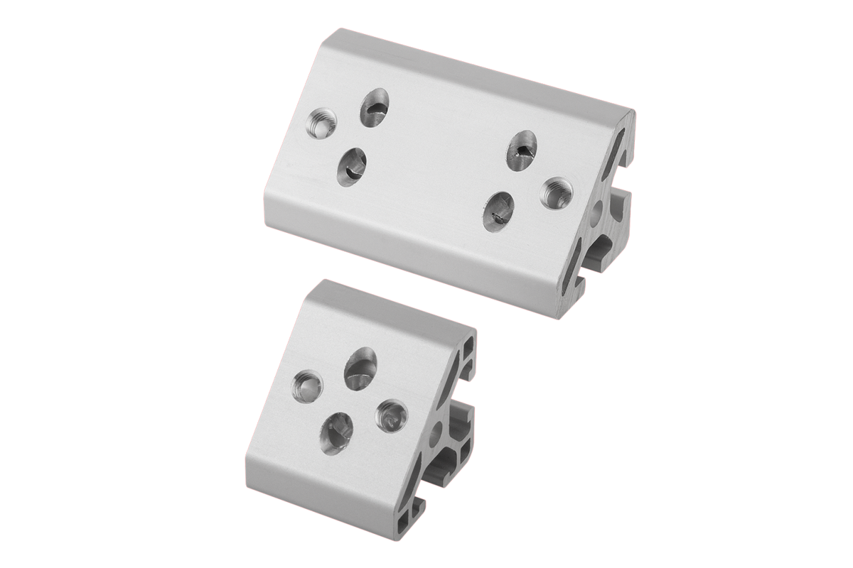 El elemento angular se fija mediante un juego de conectores universal (retirar la protección antitorsión) y tornillos semirredondos ISO 7380.