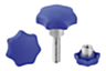 Empuñaduras en estrella cruz de plástico detectables visualmente con casquillo de acero saliente, forma L, con rosca exterior
