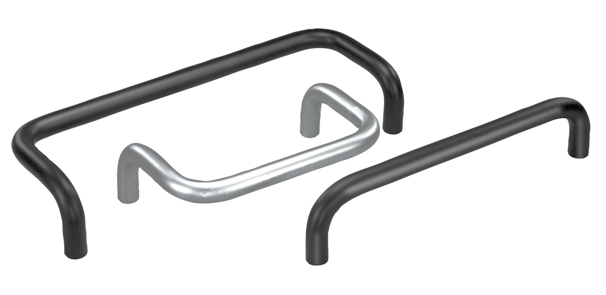 Poignées de manutention en acier, profil rond coudé, chromé mat ou thermolaqué, montage à l’arrière