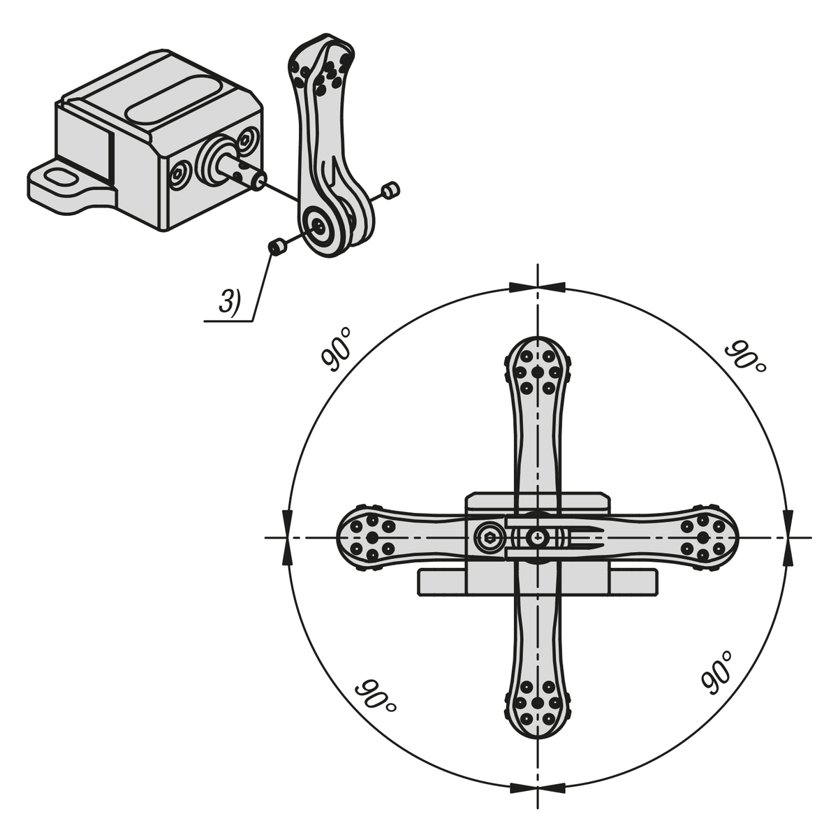 orientée horizontalement et verticalement par pas de 90° en desserrant la vis sans tête.