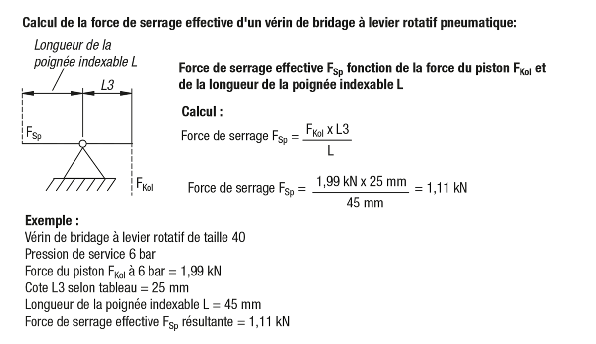 Les vérins de bridage à levier rotatif permettent de générer des forces importantes. Il convient alors de veiller à ce que les pièces à usiner et les dispositifs de bridage soient conçus pour supporter de telles charges.