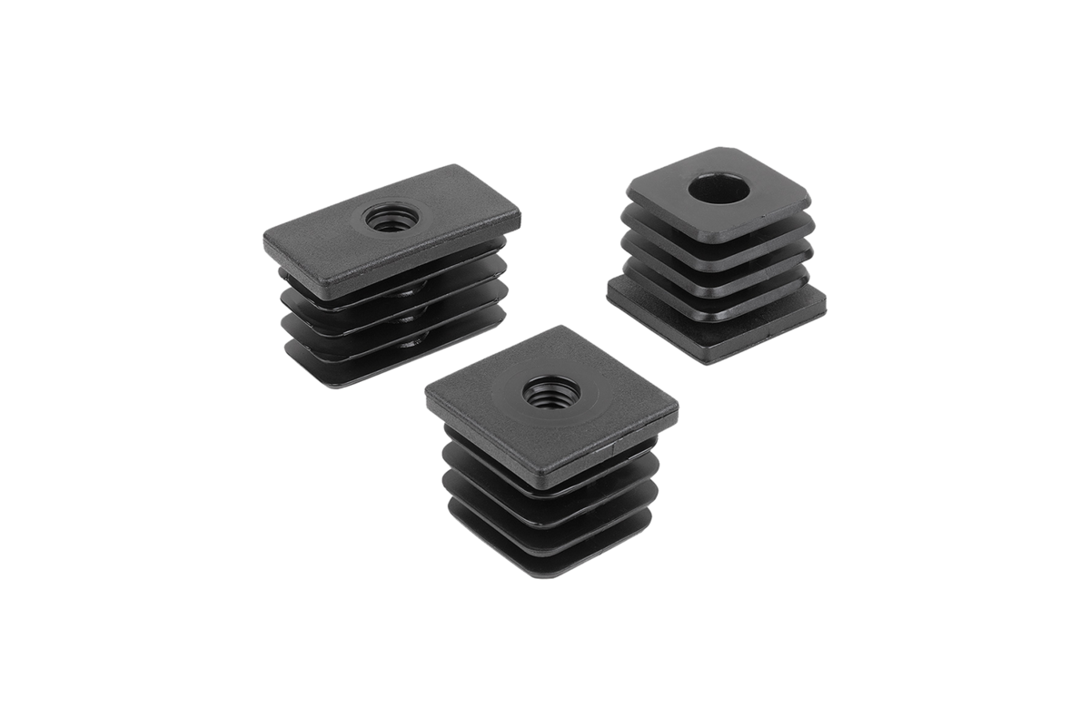 Bouchons à insert taraudé en plastique pour tubes carrés, forme B, rectangulaires
