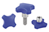 Poignées croisillon en plastique détectables visuellement avec douille en acier saillante, forme K : douille taraudée
