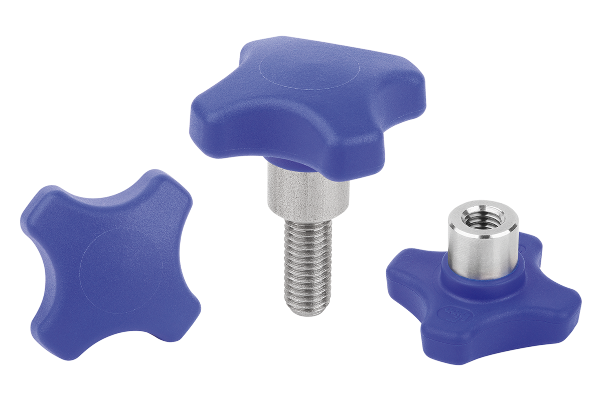Les poignées croisillon avec douille en acier saillante et taraudage se prêtent particulièrement aux goupillages transversaux.