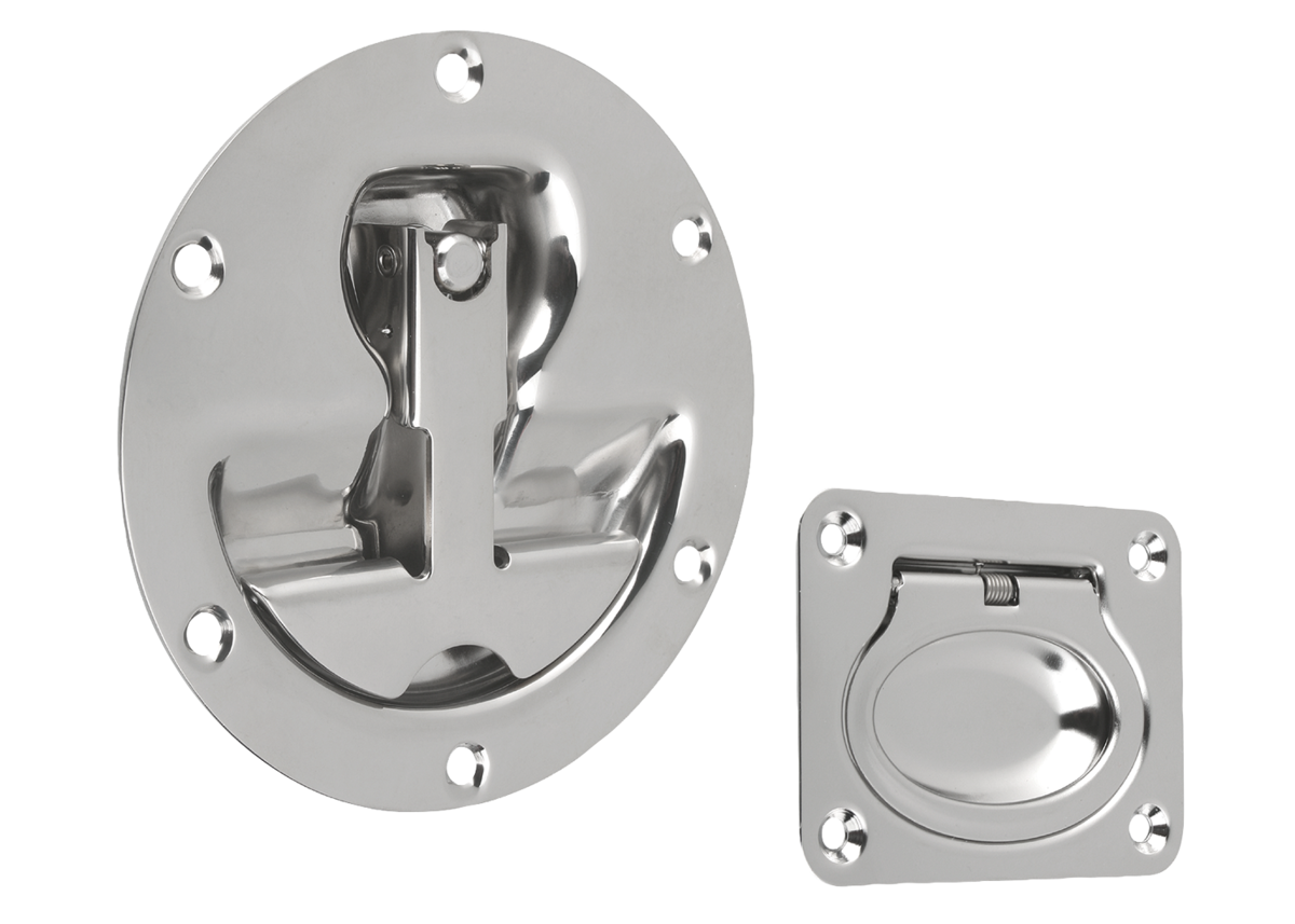 Poignées escamotables en Inox avec faible profondeur de montage. Particulièrement adapté au plancher, au côté de caisse ou au tiroir. Avec ressort de rappel, les poignées escamotables reviennent automatiquement en position de repos après chaque utilisation.