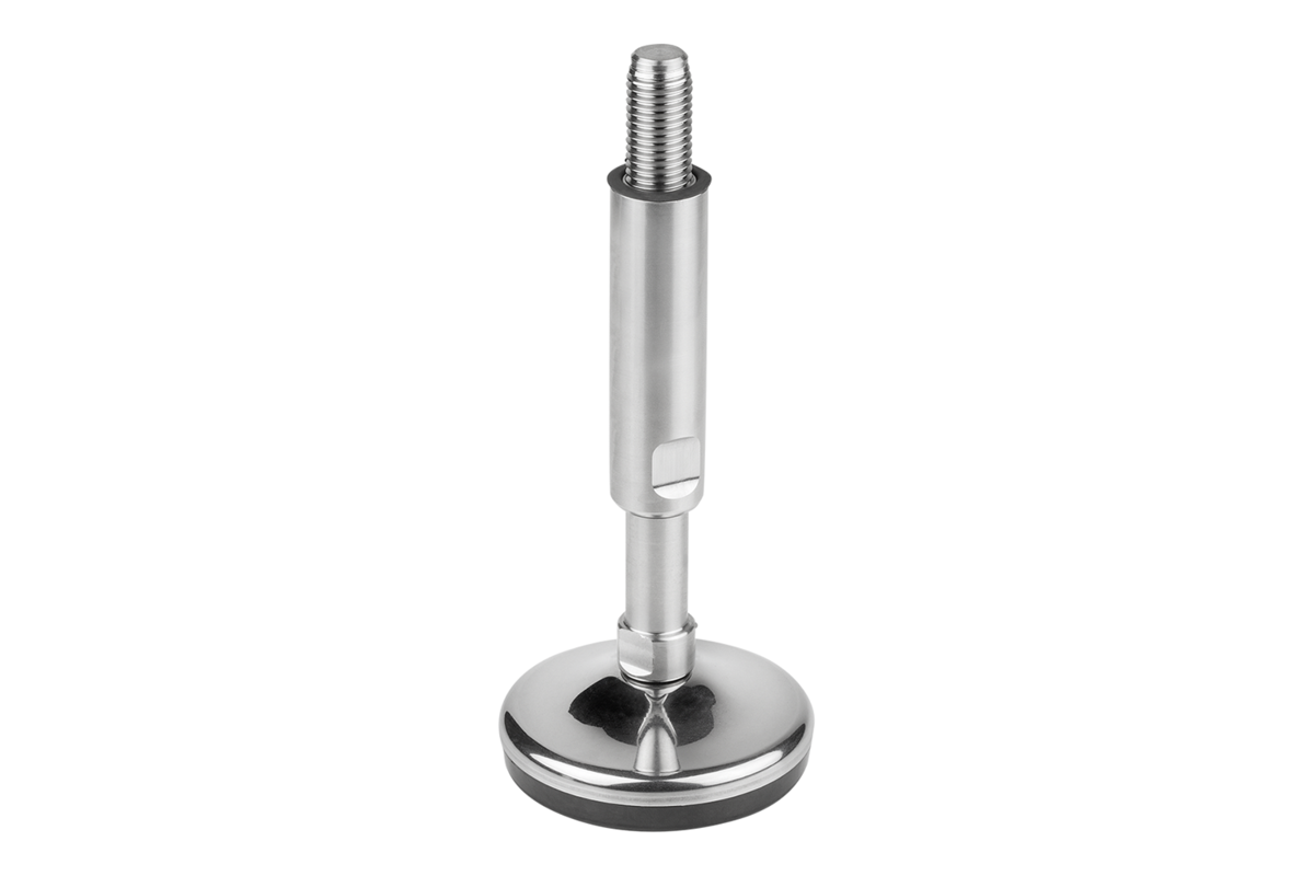 Le pied réglable dispose d'une gaine ajustable, qui recouvre la partie filetée de la pièce. Un joint torique est intégré à l'intérieur de cette gaine. Le joint torique empêche la pénétration de saletés.